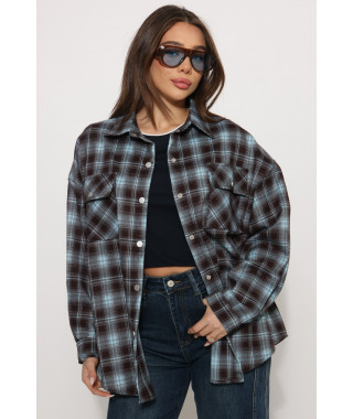 חולצה משובצת ריקמה בגב