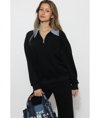 חולצה שילוב צווארון ג`ינס + רוכסן