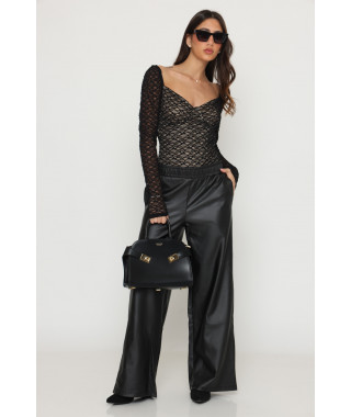 מכנס רחב עור מותן גומי עם כיס צד 5