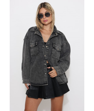 ג`קט ג`ינס כיסים בצד קצר ארוך
