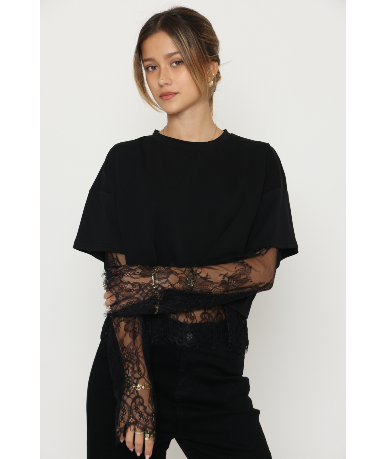 חולצה שילוב תחרה ש.ארוך