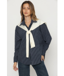 חולצה מכופתרת שילוב צעיף פסים לאורך
