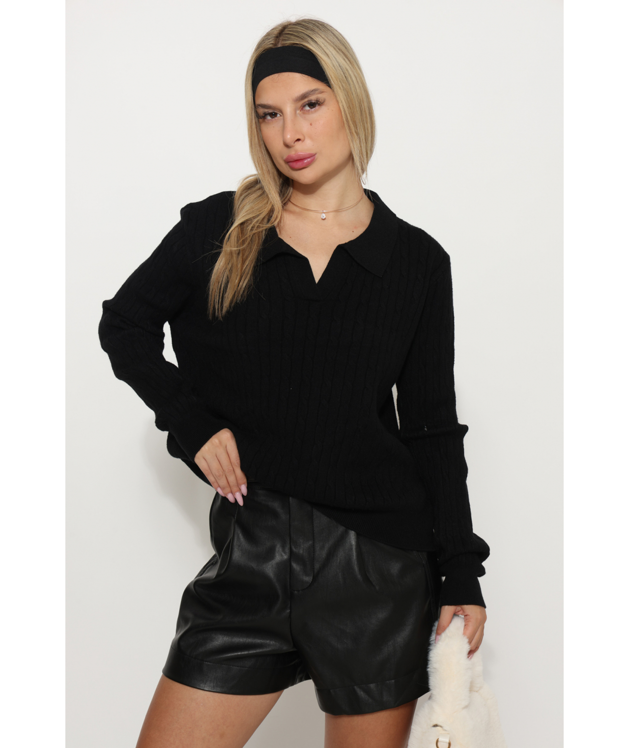 סריג צווארון צמה