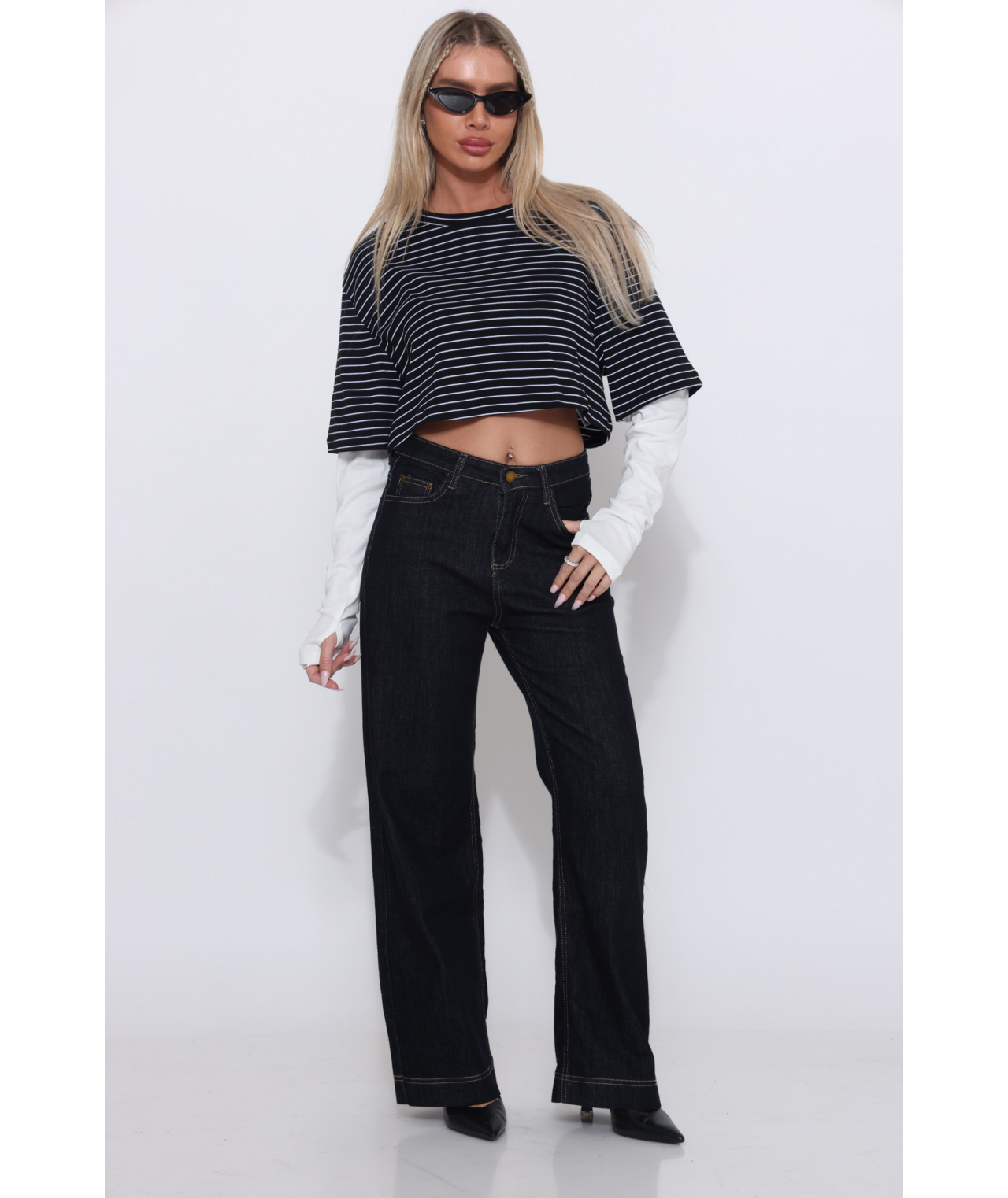 מכנס ג`ינס מכפלת רחבה