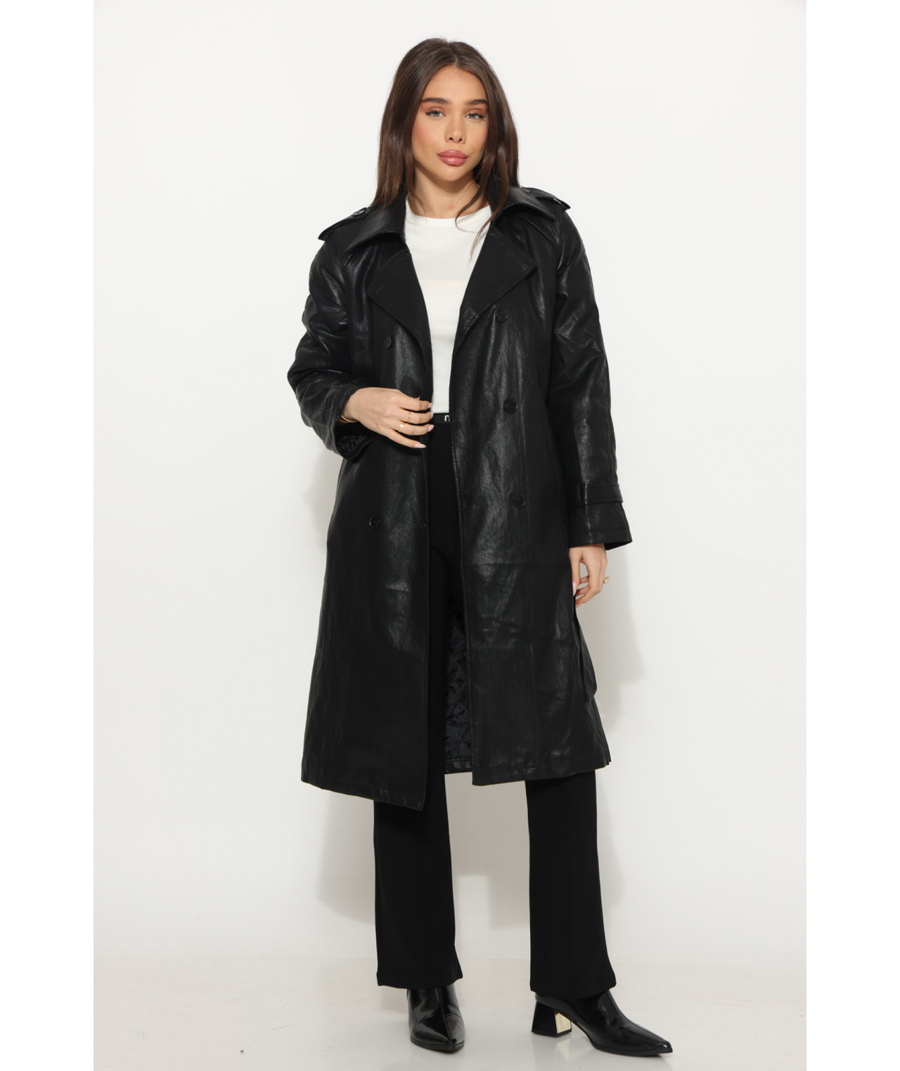 ג`קט דמוי עור ארוך + ביטנה מילוי
