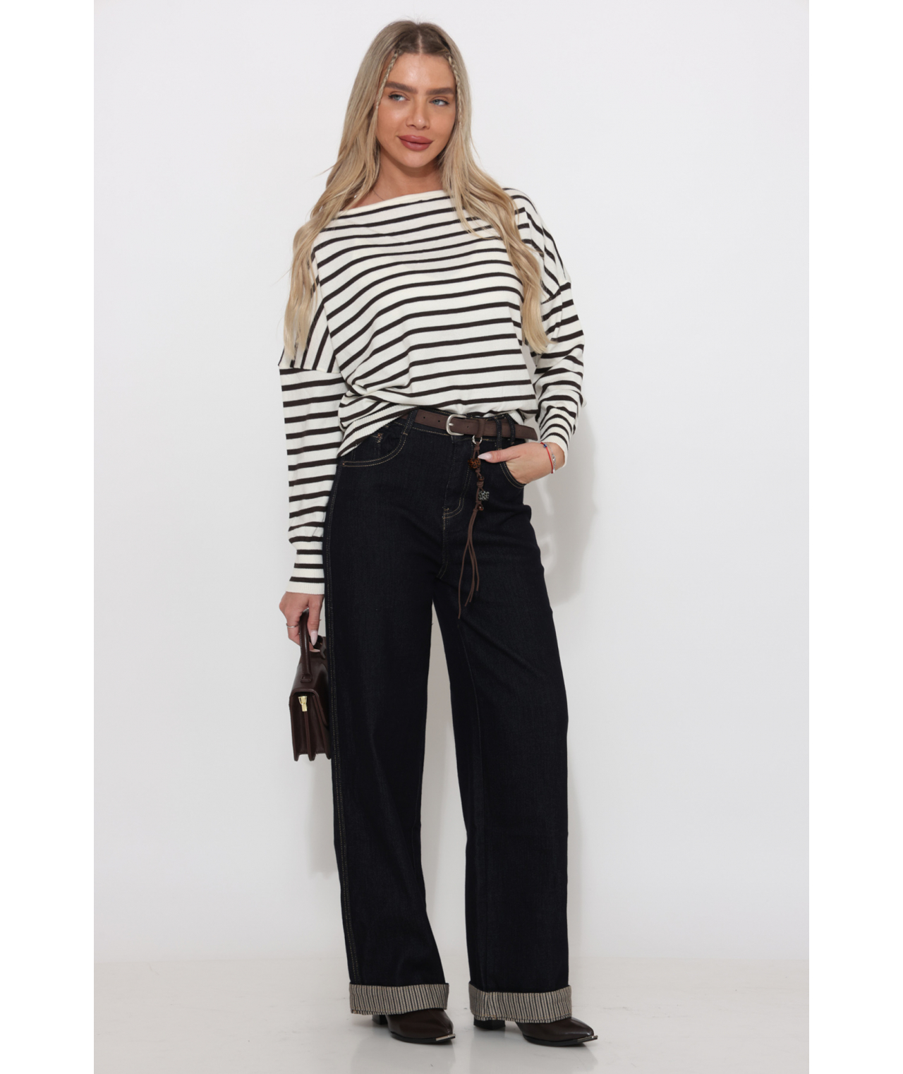ג`ינס קיפול מכפלת משולב פסים