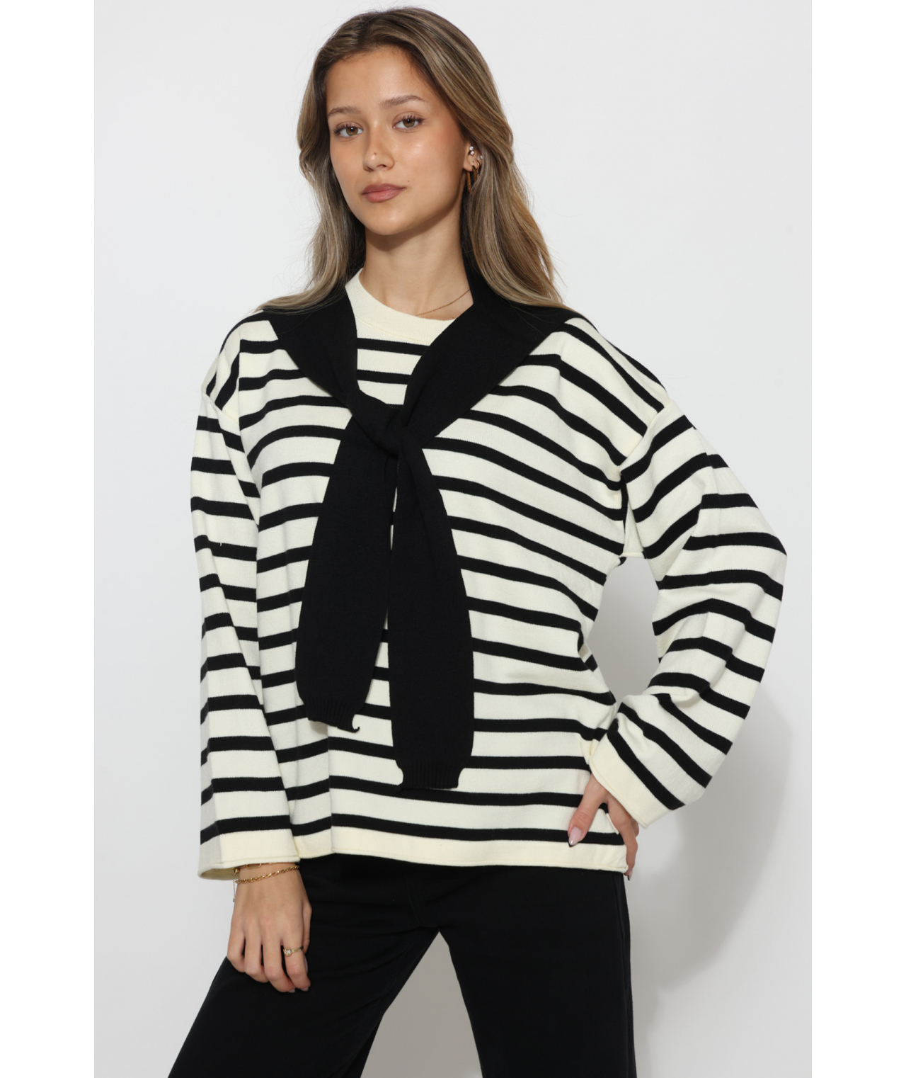 חולצה סריג פסים+ דמוי סריג מעל